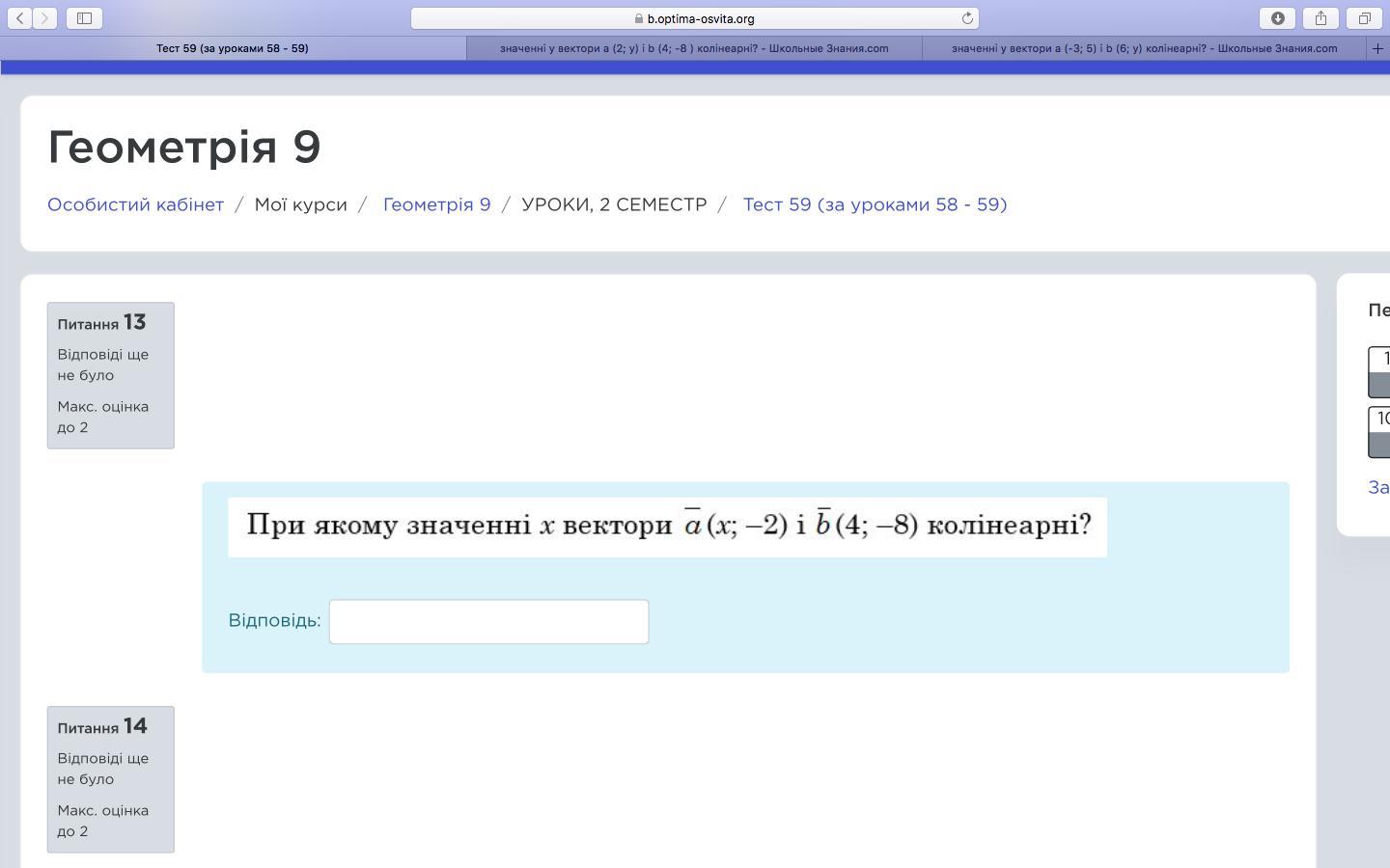 Вектори колірнеарні, якщо їх координати пропорційні. a(x; -2); b( 4; -8)