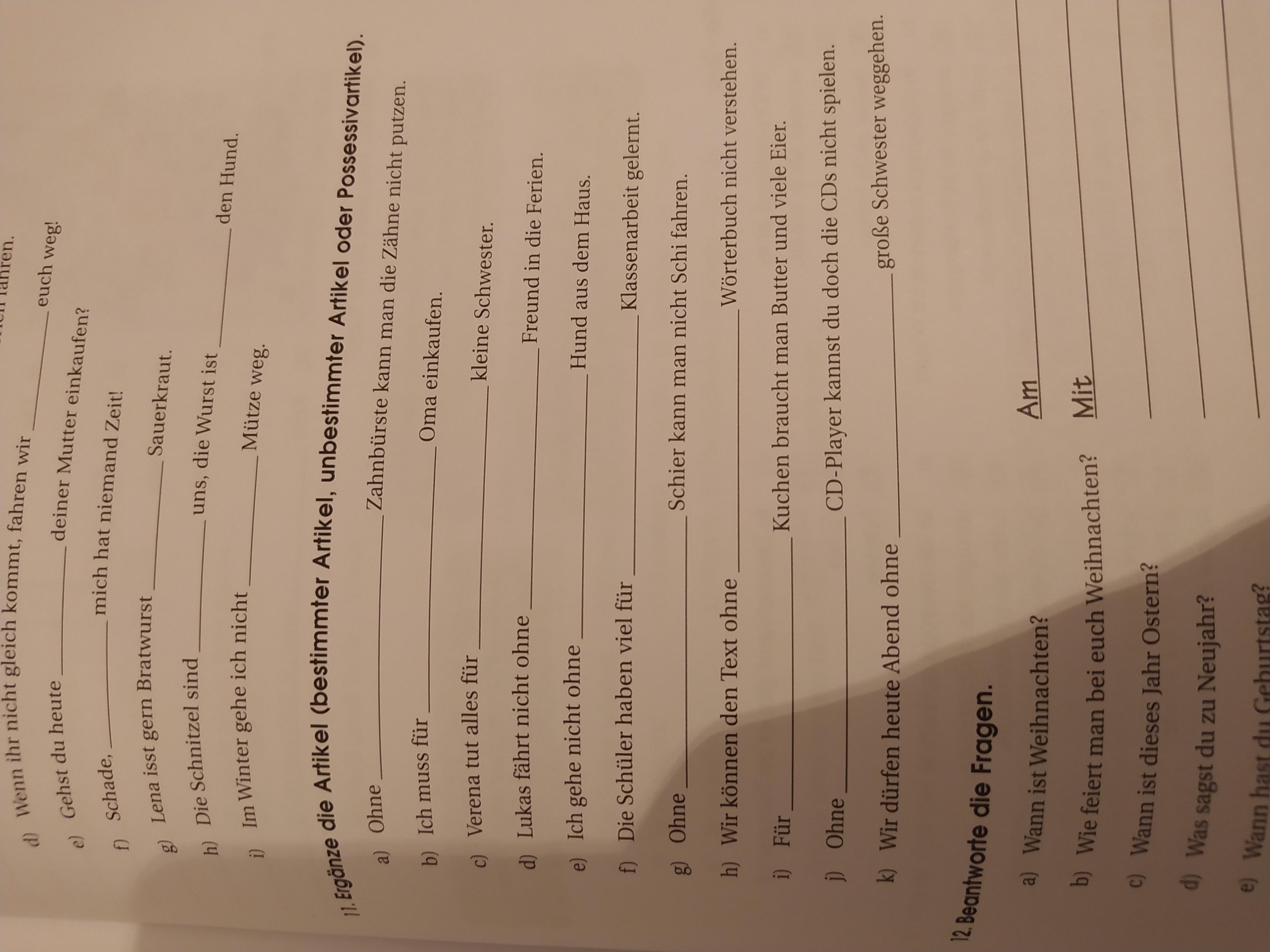 a) die b) meine c) ihre d) seinen e) meinen f) die g) die h) das i) einen j) einen k) unsere