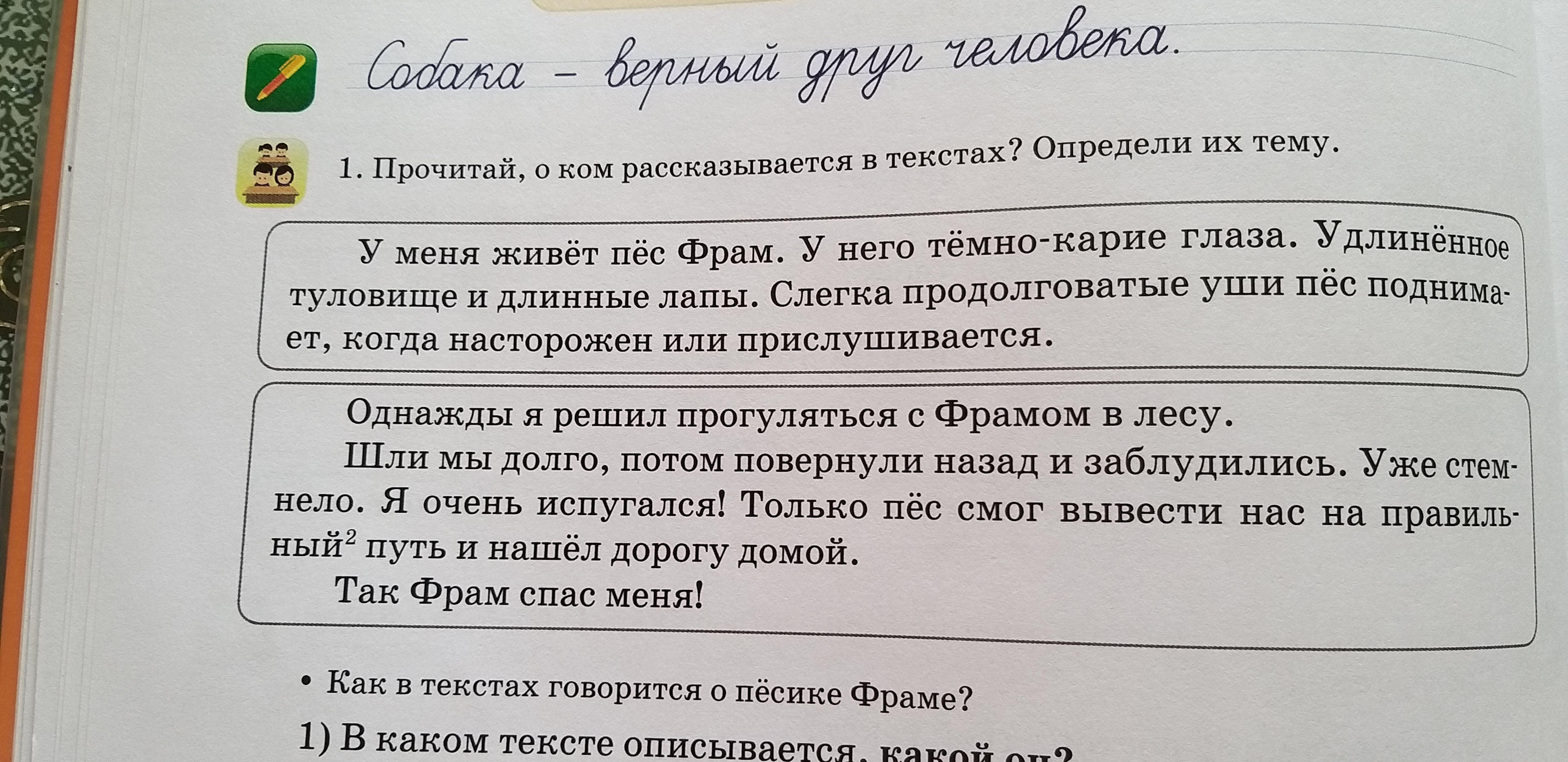 Однажды я решил прогуляться с фрамом в лесу.Шли мы долго, потом повернули назад и заблудились. Уже стемнело. Я очень испугался! Только пёс смог вывести нас на правильный путь и нашёл дорогу домой. Так фрам спас меня!