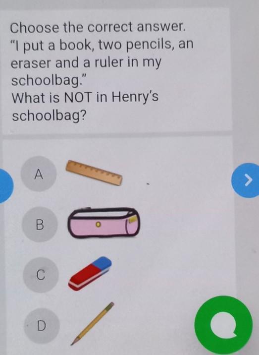Объяснение: (про пенал ничего не сказали).Вариант D неправильный, потому что спросили, чего нет в рюкзаке, а карандаш там есть(неважно 1 или 2)