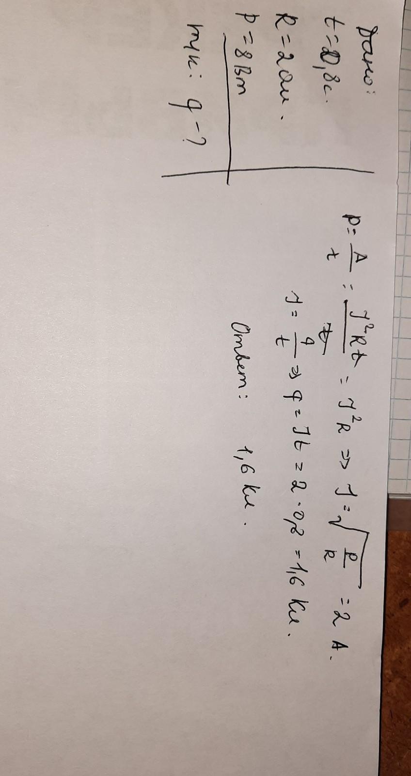 какой заряд проходит по резистору сопротивления в 2 ом за 0.8 сек если развиваемая электрическая мощность равна 8вт ?