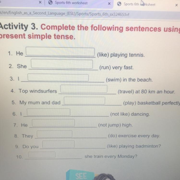Ответ:1) likes 2) runs 3) swim 4) travel 5) play
