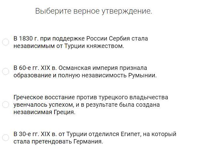 1)в 1830 при поддержке России Сербия стала независимым от Турции княжеством