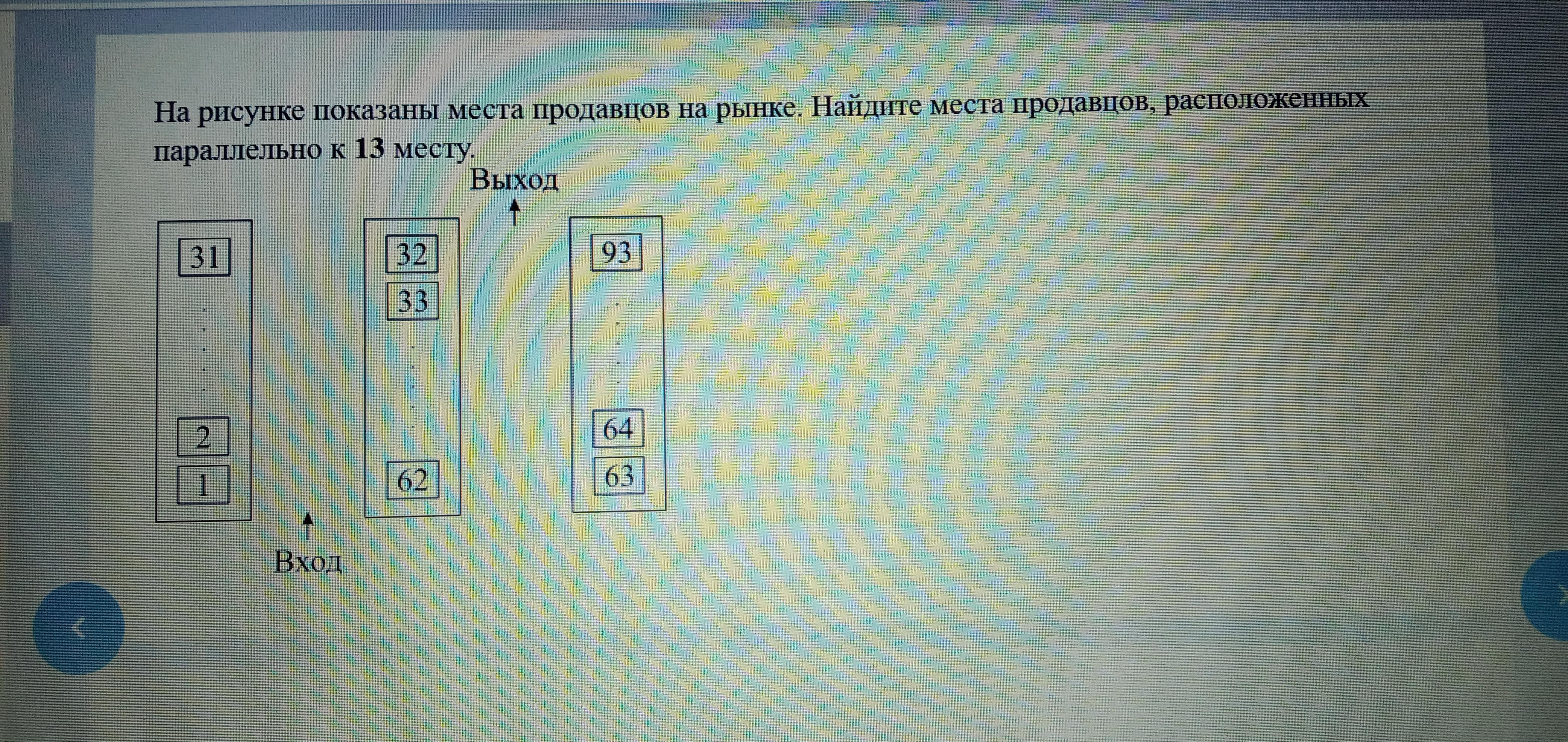 На рисунке показаны места продавцов на рынке найдите места продавцов расположенных параллельных 13 месту