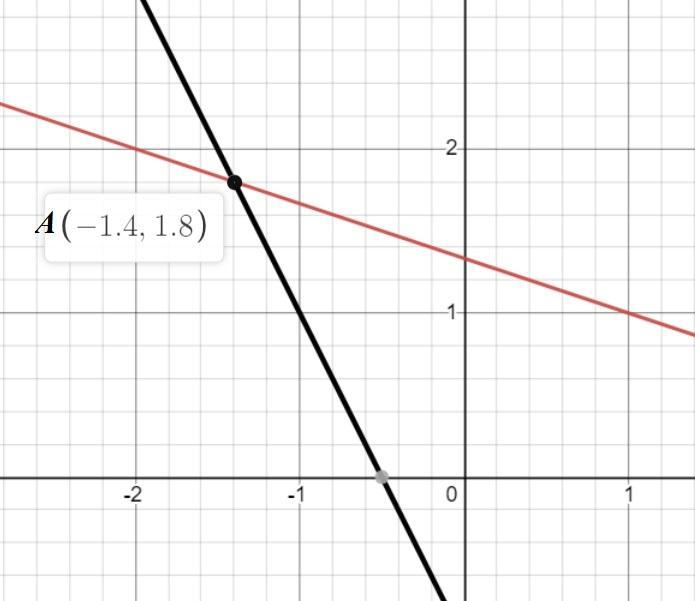 Графики функций пересекаются в точке А(-1,4; 1.8).