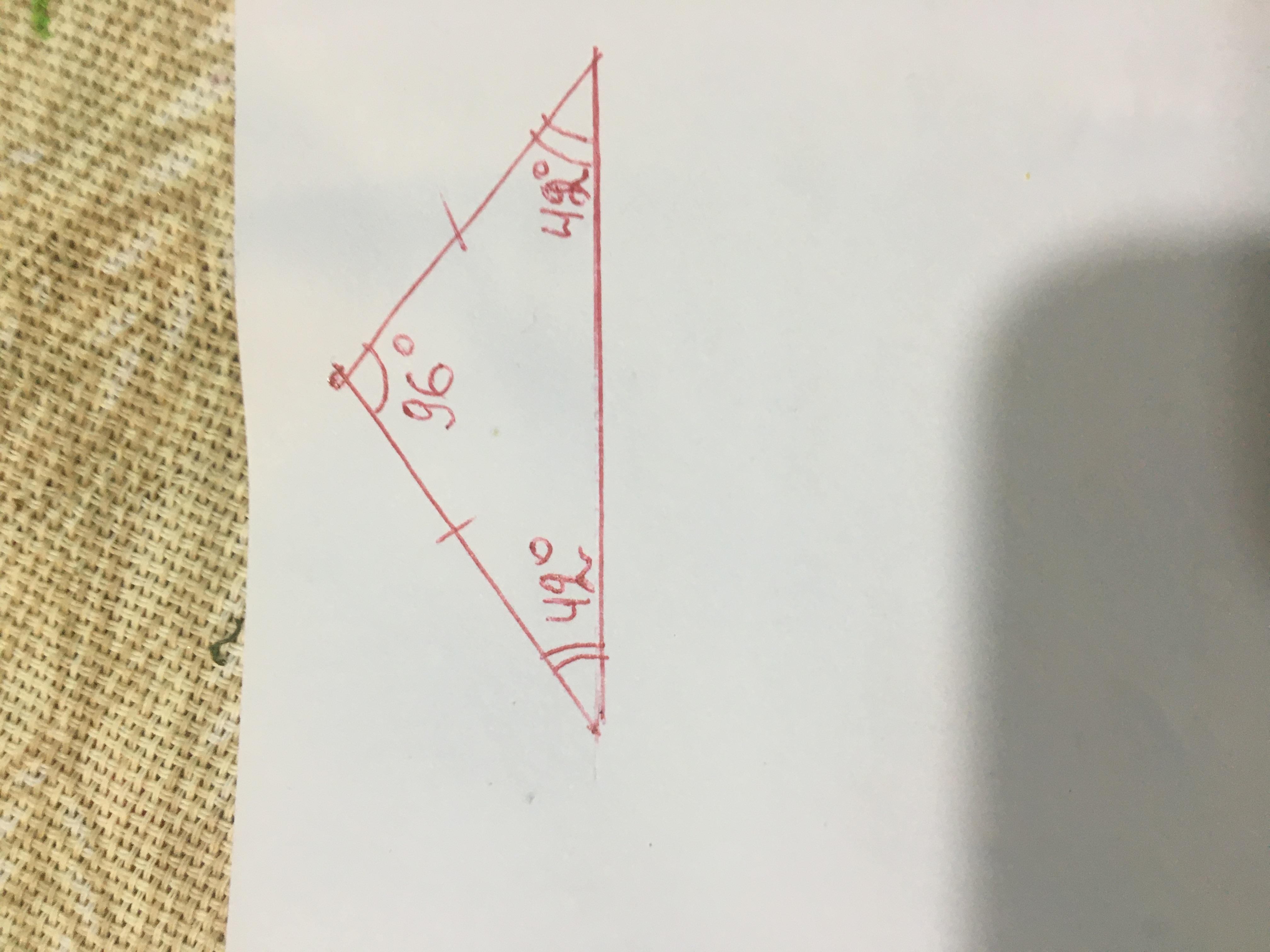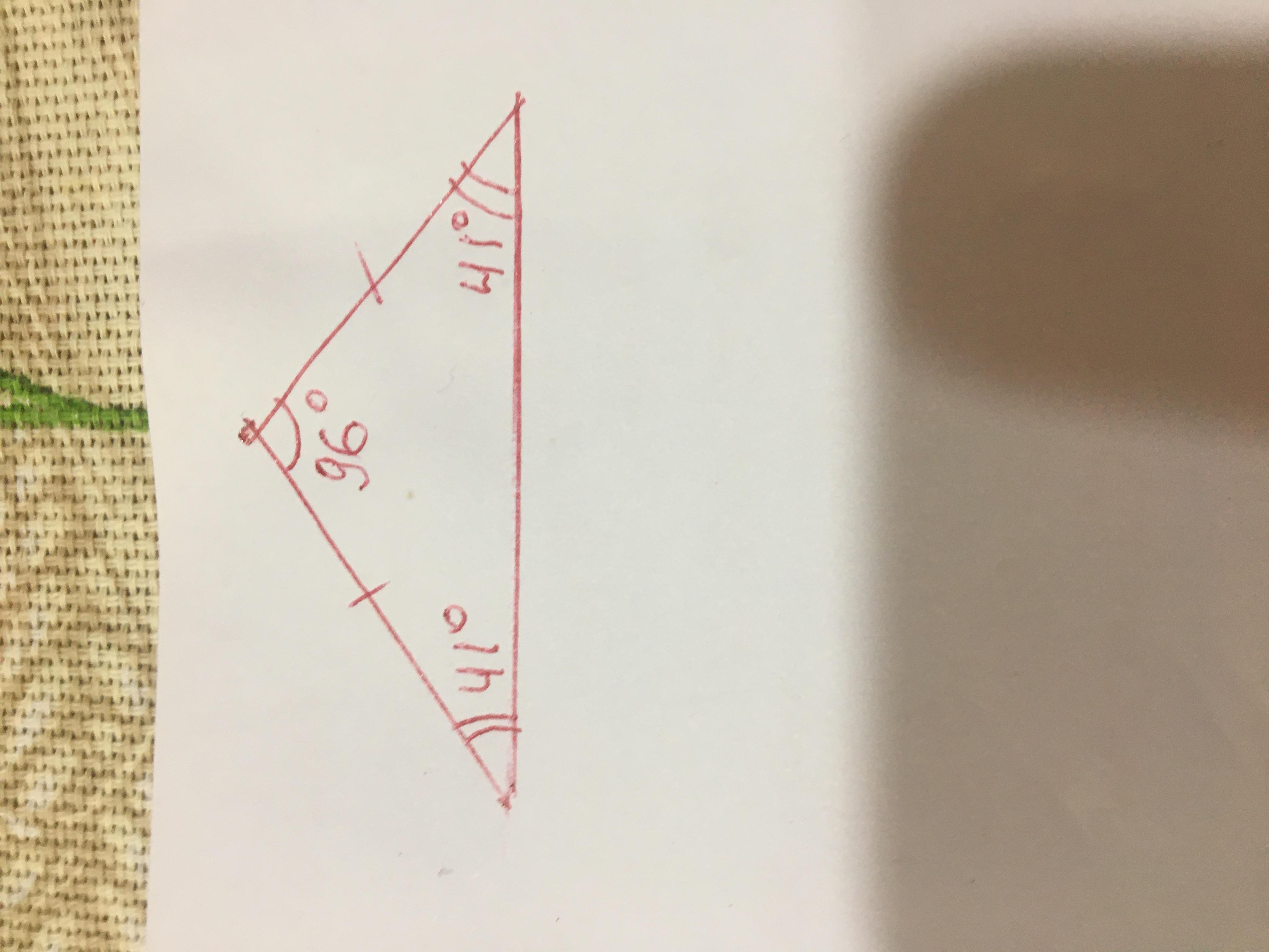 Ответ:Угол 96 градусов-это угол при вершине равнобедренного треугольника