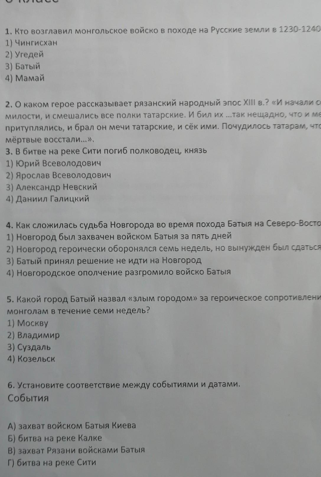 3) - 1 - В битве на р. Сить погиб князь Юрий Всеволодович.