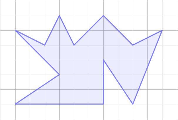 Считаем площади белых треугольников, квадратов , которые включились в прямоугольник: 1\2(2*3+2*5+3+2*1+1*1+3*2+2+1*2+1*2+5*2)=1\2*44=22