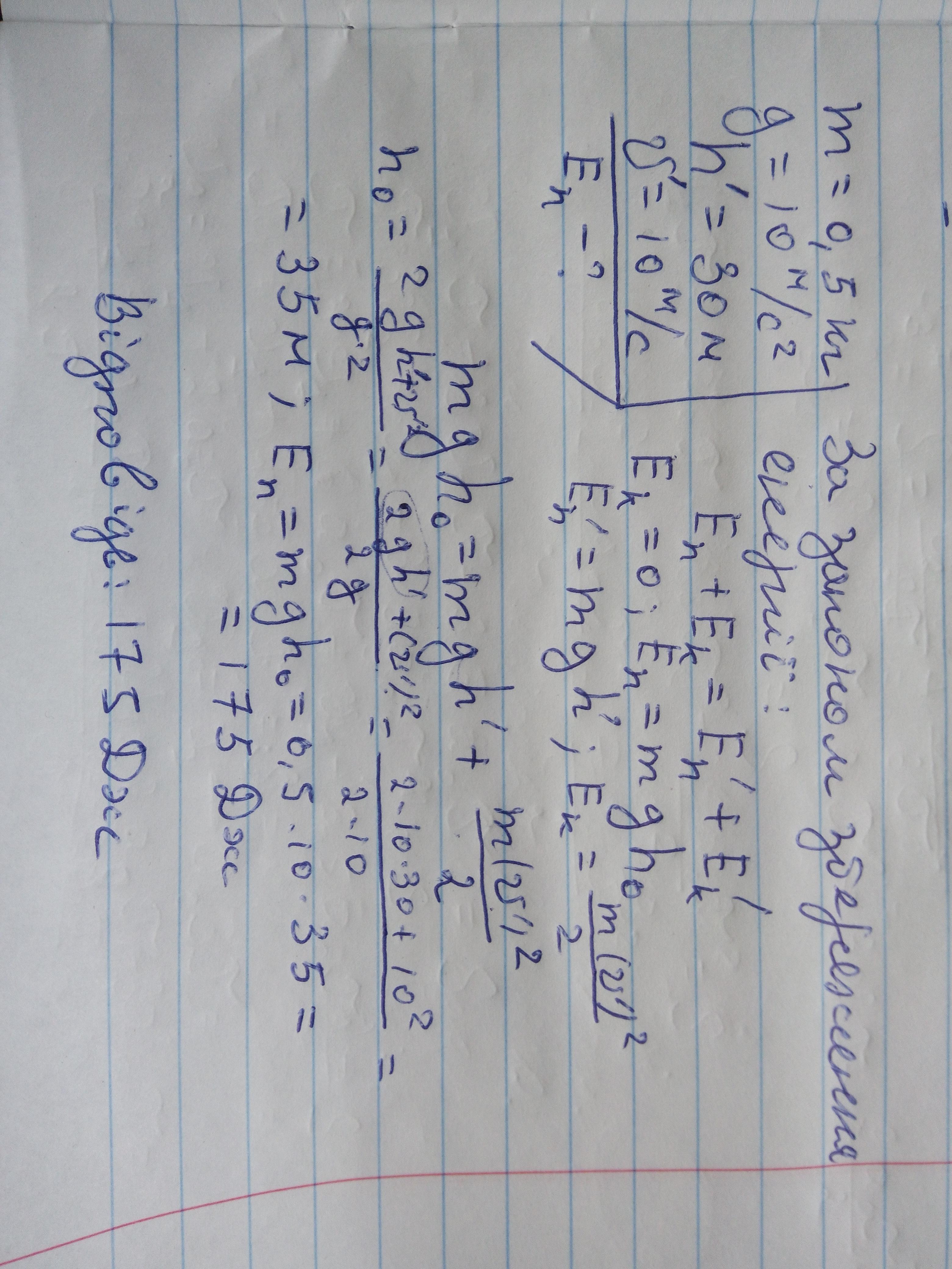№8. Тіло масою 500 г вільно падає з деякої висоти. Визначити потенціальну енергії тіла в початковому положенні, якщо на висоті 30 м тіло мало швидкість 10 м/с.