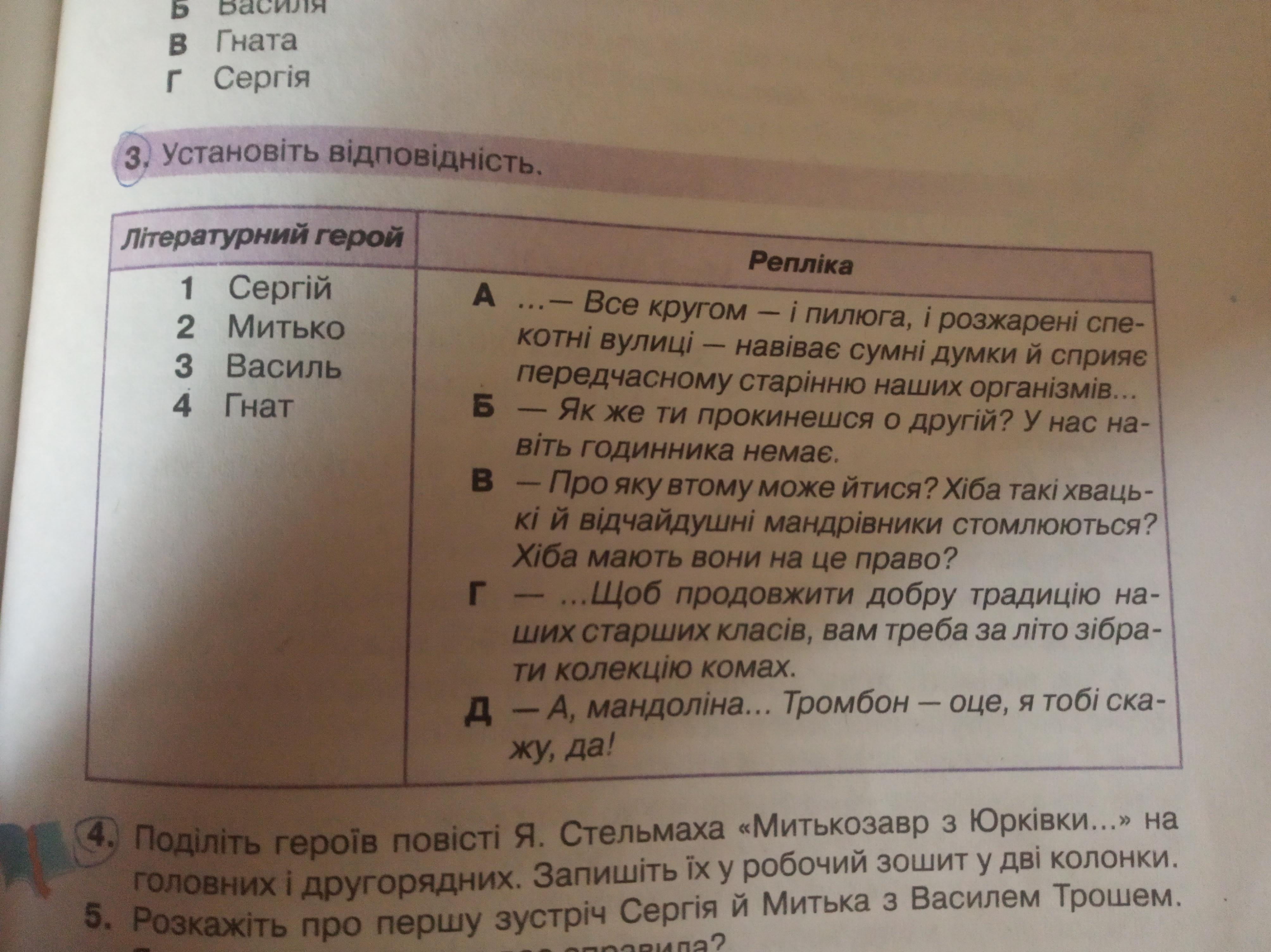 1. Сергій - Б) — Як же ти прокинешся о другій? У нас навіть годинника немає.