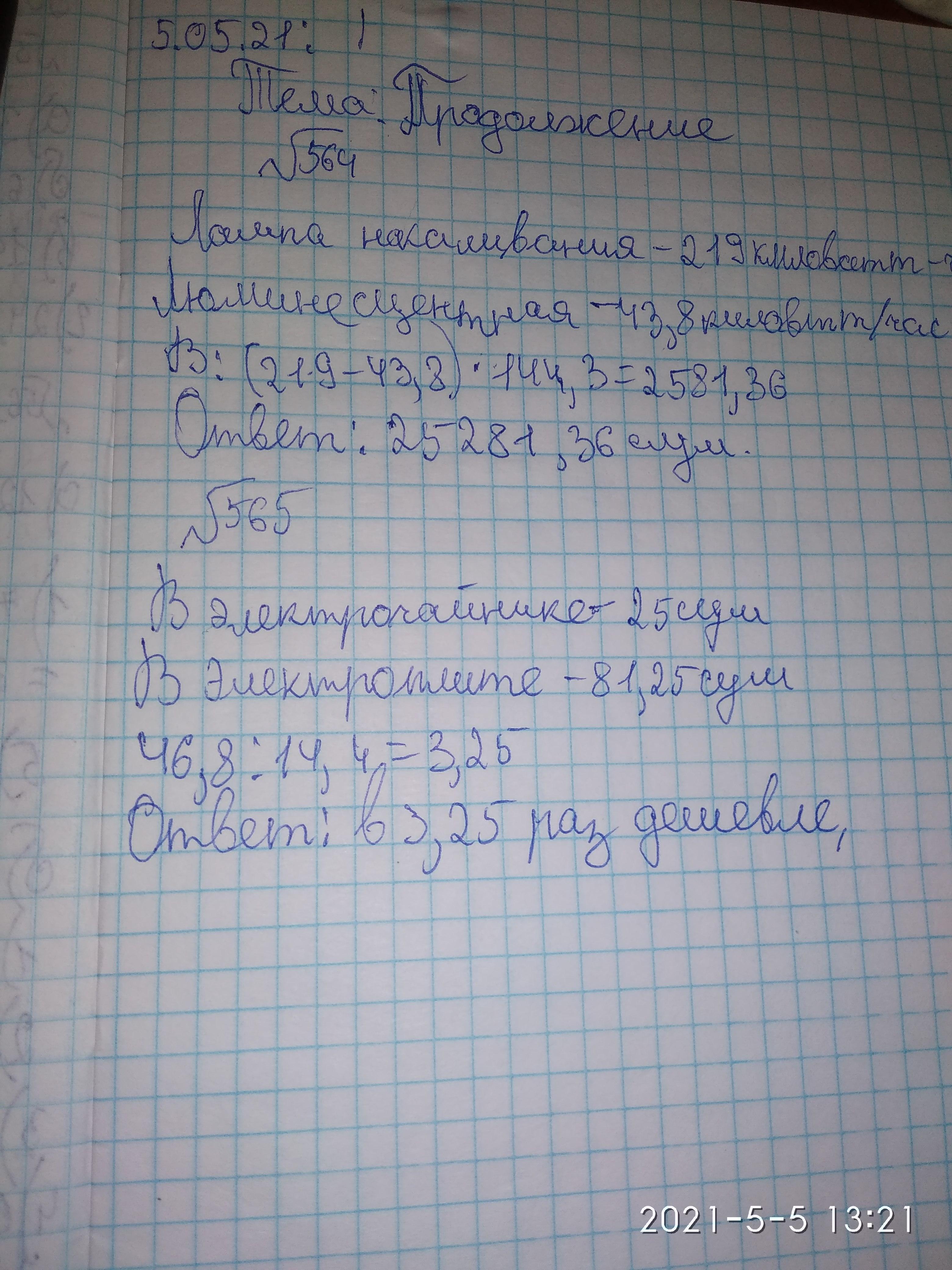 565. При кипячении 1 литра воды в электрочайнике расходуется 25 сум, а