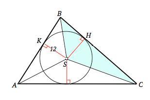 Биссектрисы треугольниа АВС пересекаются в точке S. Расстояние от точки S до стороны АВ равно 12 дм. Найдите площадь треугольника BSC, если ВС = 30 дм. Ответ дайте в дм2.