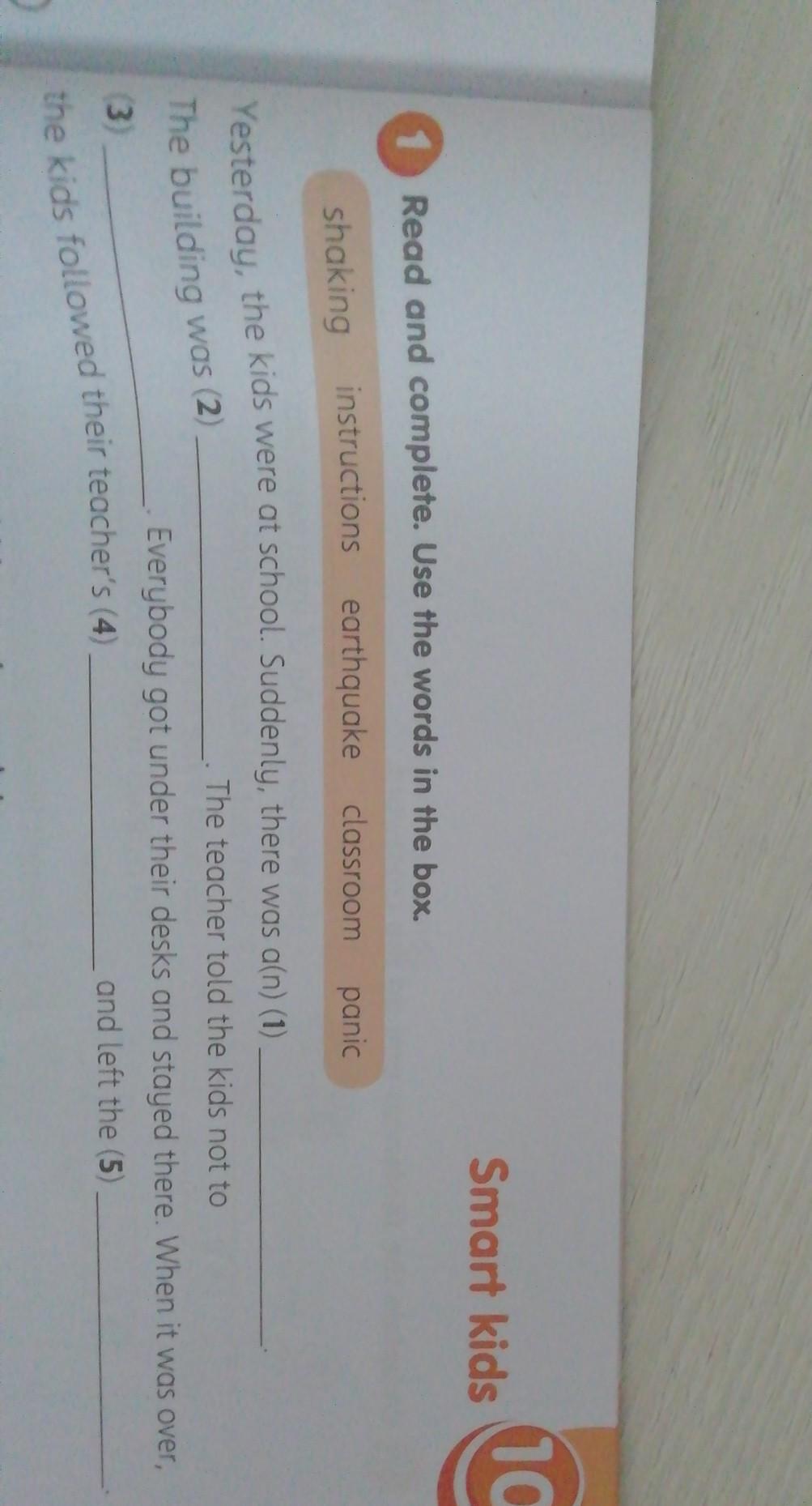 Yesterday, the kids were at school. Suddenly, there was a(n) (1)