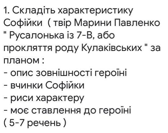 Софійка- гарна дівчина, вона добра, дружелюбна, допомагала кулаківським позбутися прокляття, допитлива.