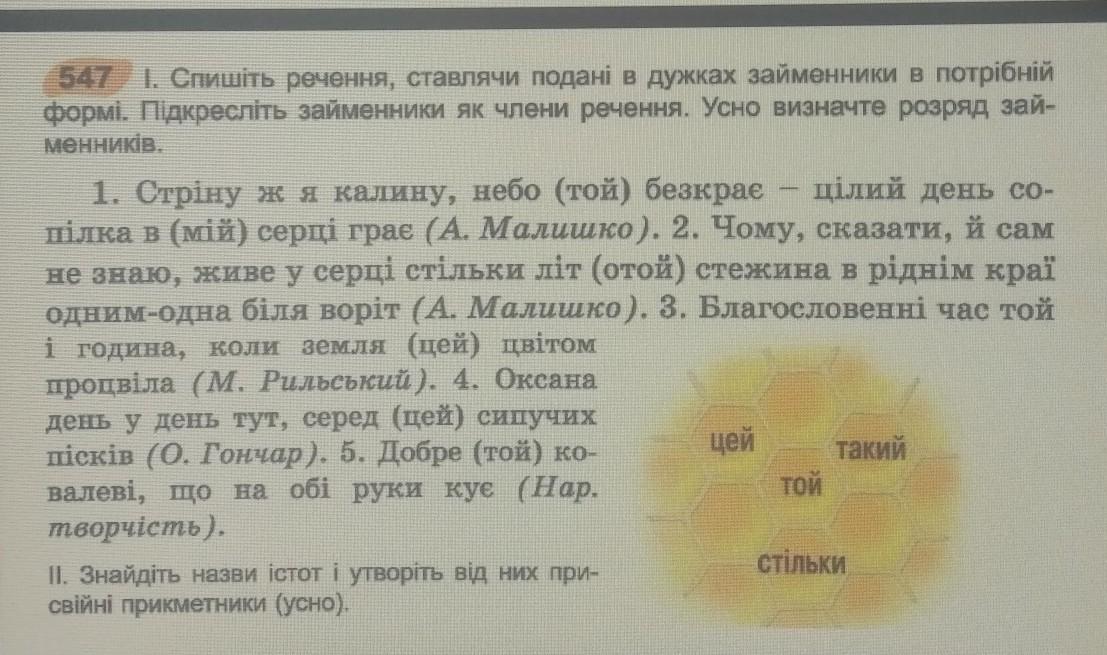 те (вказ), моїм(прис), ота (вказ), ця(вказ), цих (вказ) тому (вказ)