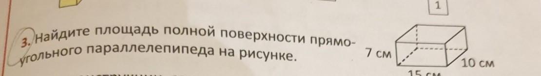 Найдите площадь полной поверхности прямоугольного параллелепипеда на рисунке пожалуйста даю 20 баллов