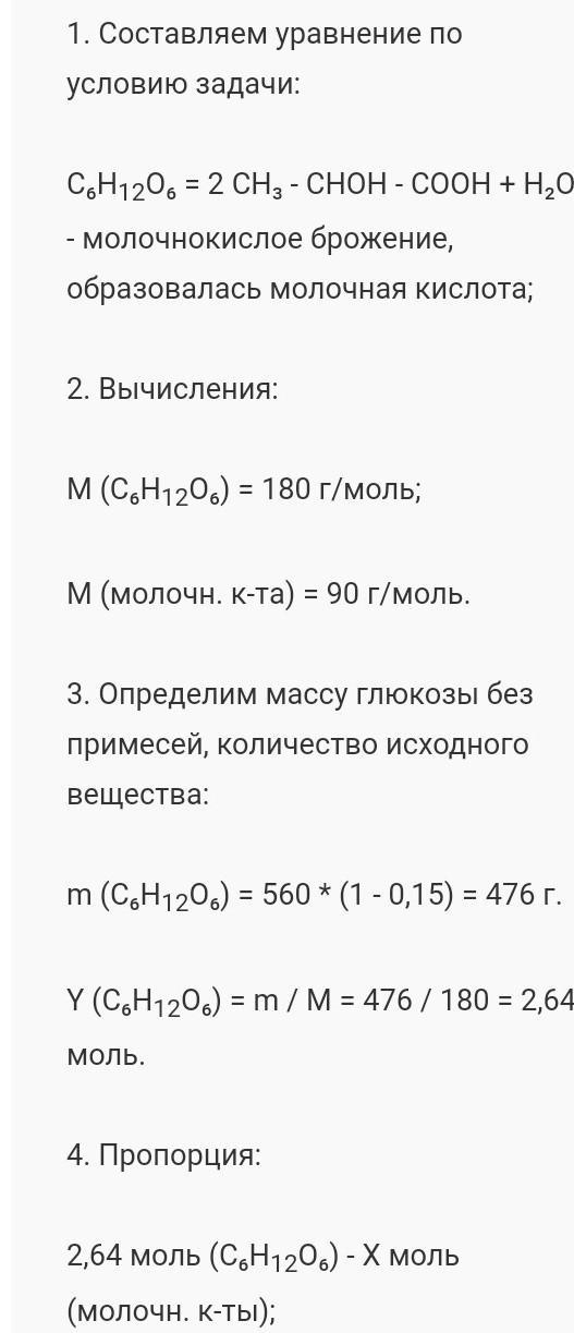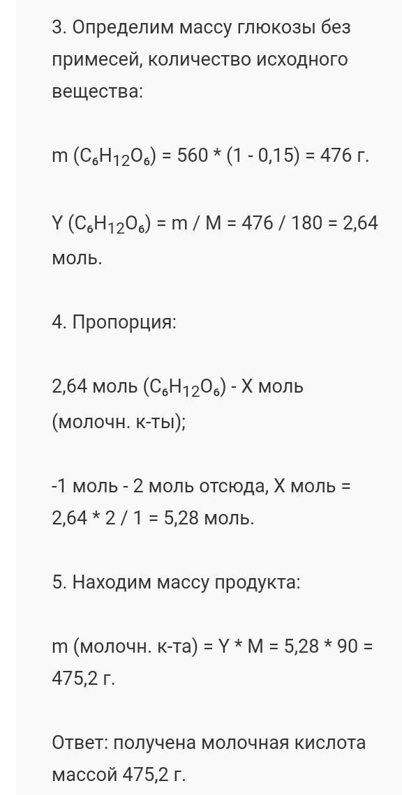 Какая масса молочной кислоты образуется при молочнокислом брожении 40г глюкозы, содержащей 10% примесей?