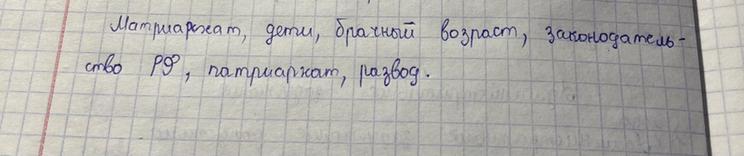 В каждой обычной среднестатистической семье в РФ присутствует,как матриархат так и патриархат.Главным событием в семье являются дети.Дети так же вырастают и достигают брачного возраста,по законодательству РФ это 18,крайний случай 16 лет.Так же по законодательству РФ люди могут и подать на развод.