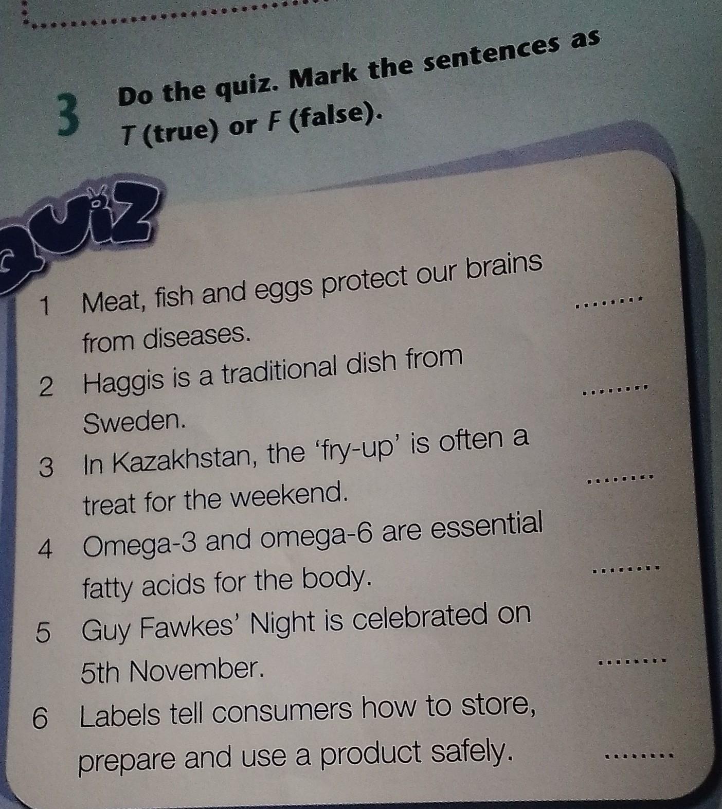 ex3 p 98 Do the quiz. Mark the sentences as T (true) or F (false).