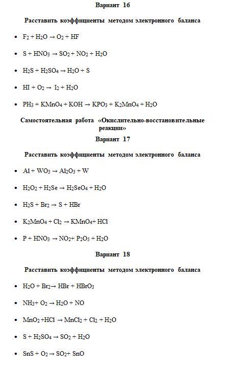 Самостоятельная работа «Окислительно-восстановительные реакции»