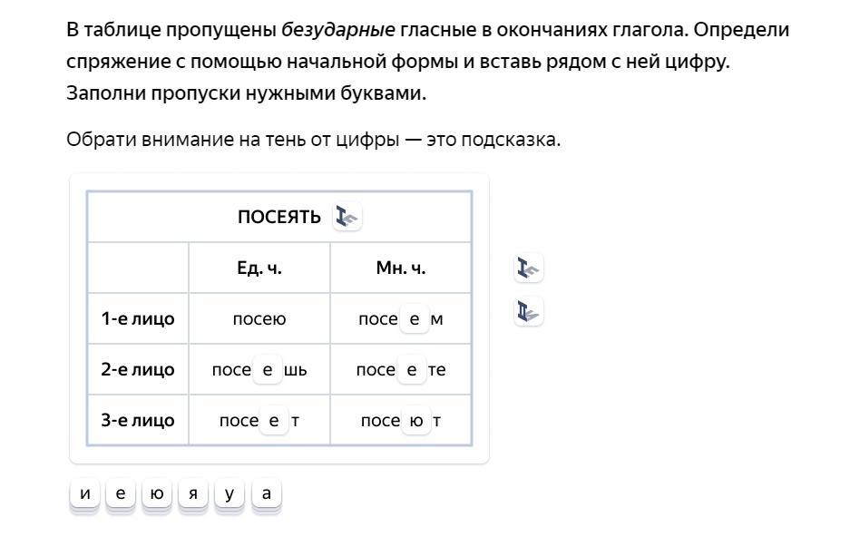 В таблице пропущены безударные гласные в окончаниях глагола. Определи спряжение с помощью начальной формы и вставь рядом с ней цифру. Заполни пропуски нужными буквами.