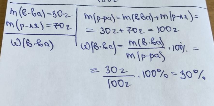 ПОМОГИТЕ ПОЖАЛУЙСТО!!! Обчисіть масову частку солі, якщо для приготування розчину взяли 30г і 70г води!!! ДАЮ 12 БАЛОВ!!!! СРОЧНО!!!