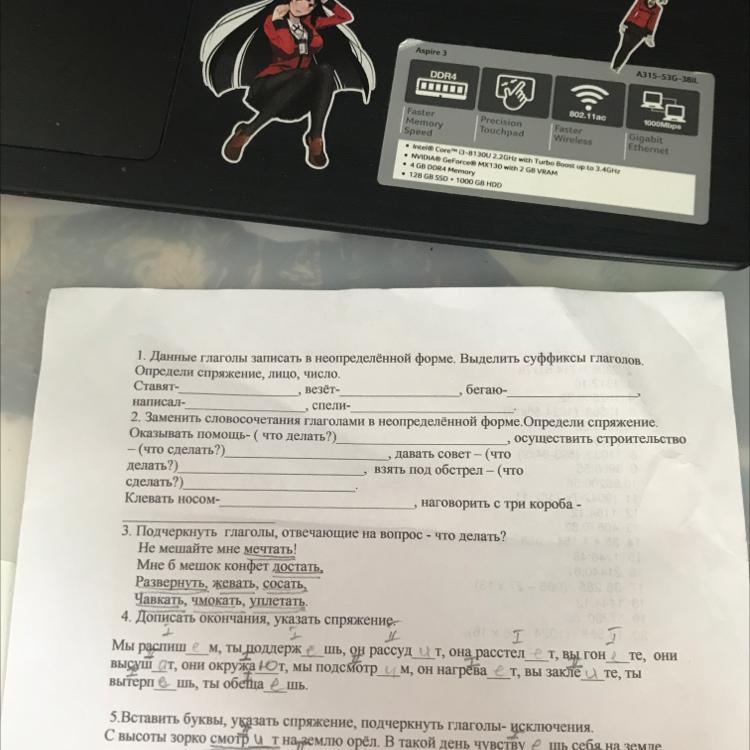 2 Заменить словосочетания глаголами в неопределённой форме. Определи спряжение