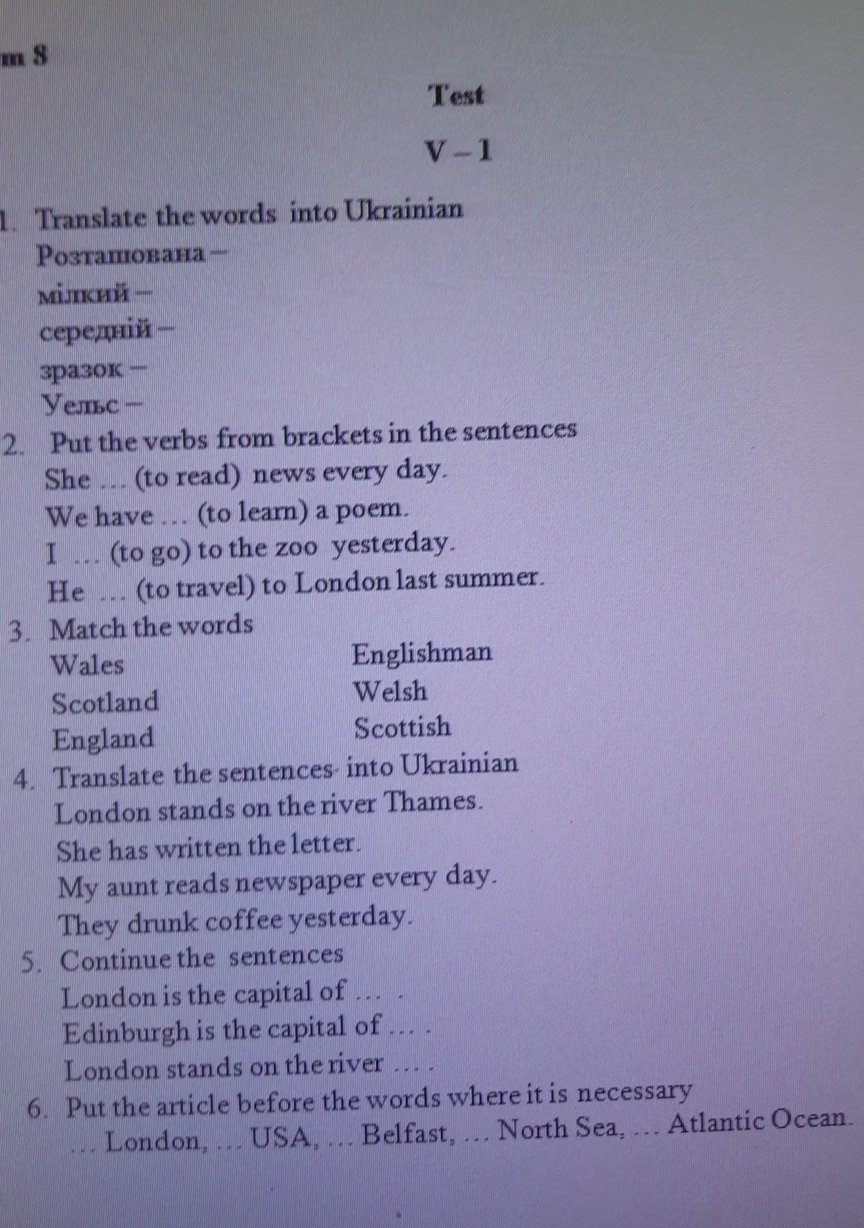 6. _ London, the USA, _ Belfast, the North Sea, the Atlantic Ocean