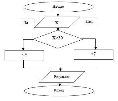 Выполни для заданных чисел (значений Х) разветвляющийся алгоритм, представленный в виде блок-схемы. Х=31. Результат___________ Х=12. Результат___________