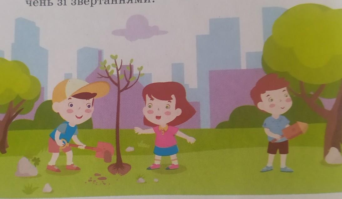 На вулиці було жарка весна. Травичка вже зеленіла, на небі було всього декілька хмаринок. Андрій та Тетянка вирішили посадити дерево, а Роман поставити годівничку для птахів. Діти дуже любили гратись на вулиці, тому вирішили зробити добру справу! Будьте уважні до природи! Не кидайте сміття на траву, та бережіть планету!!