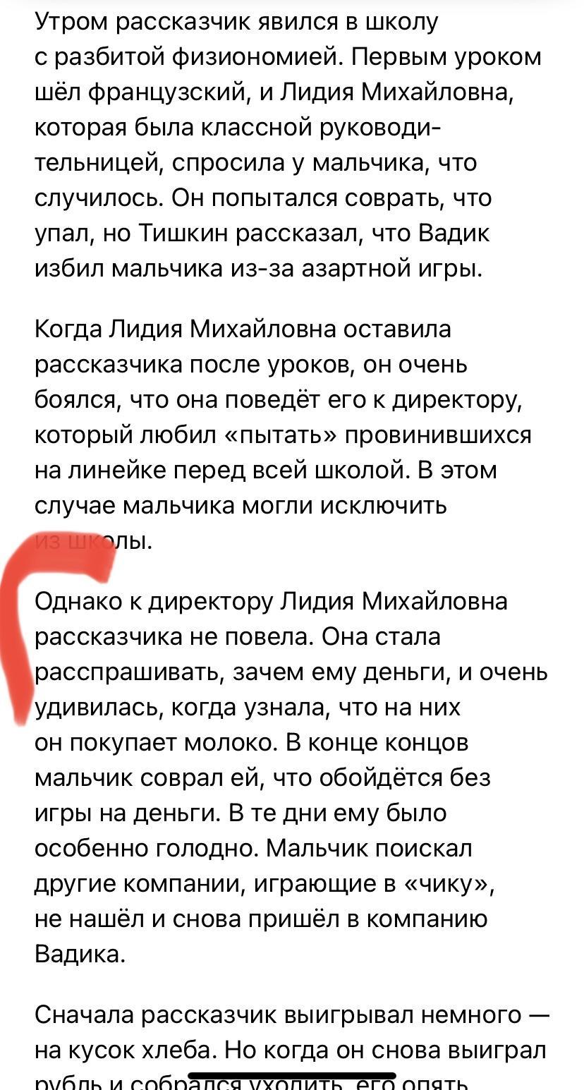 Помогите найти правильное начало и конец эпизода (ИМЕННО СО СЛОВАМИ ИЗ ТЕКСТА ГДЕ НАЧИНАЕТСЯ И КОНЧАЕТСЯ) из рассказа ''Уроки Французского', когда учительница узнала о том, что главный герой играет на деньги.