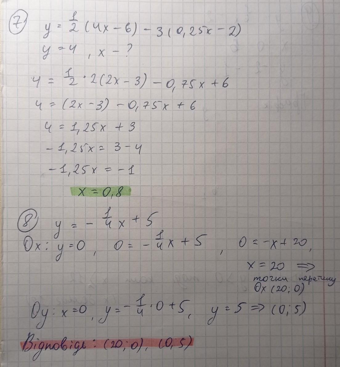 8. Пересечение: Ох: (20;0) , Оу: (0;5)