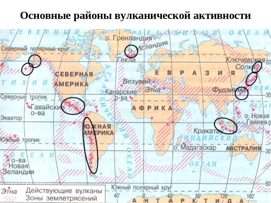 На карте найдите вулканы: Ключевская Сопка, Этна, Фудзия-