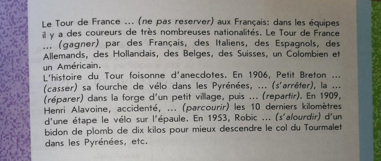 Le Tour de France ne reserve pas aux Français: l il y a des coureurs de très nombreuses nationalités. Le Tour de France était gagné par des Français, des Italiens, des Espagnols, des Allemands, des Hollandais, des Belges, des Suisses, un Colombien et un Américain.