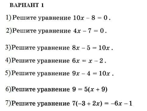10х-8=0 4х-7=0 8х-5=10х 6х=х-2 9х-4=10х