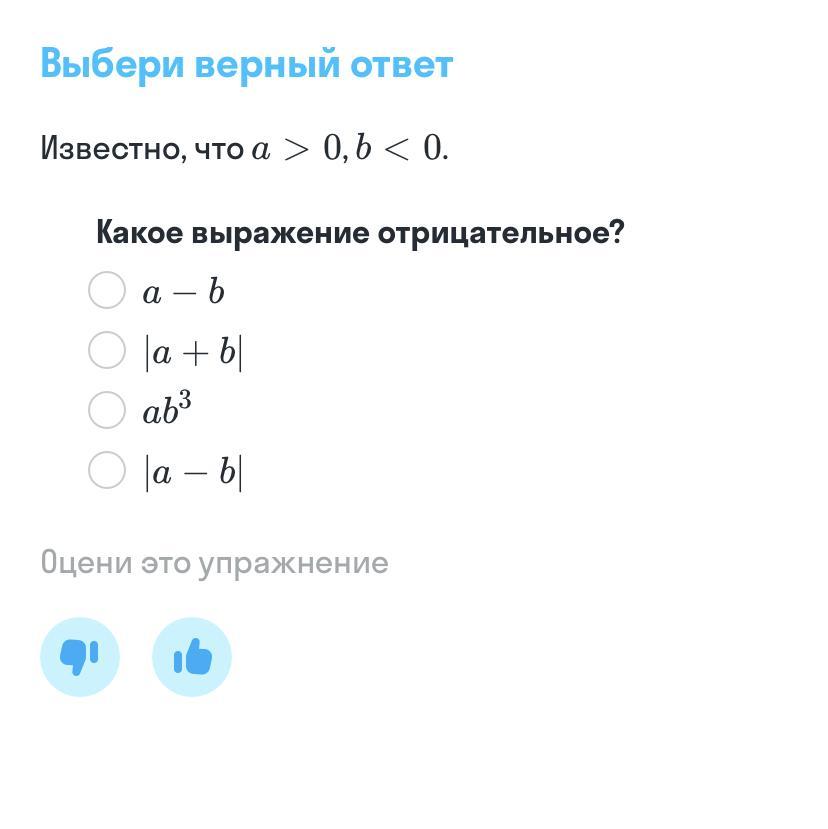 а - b не подходит так как минус на минус даёт плюс