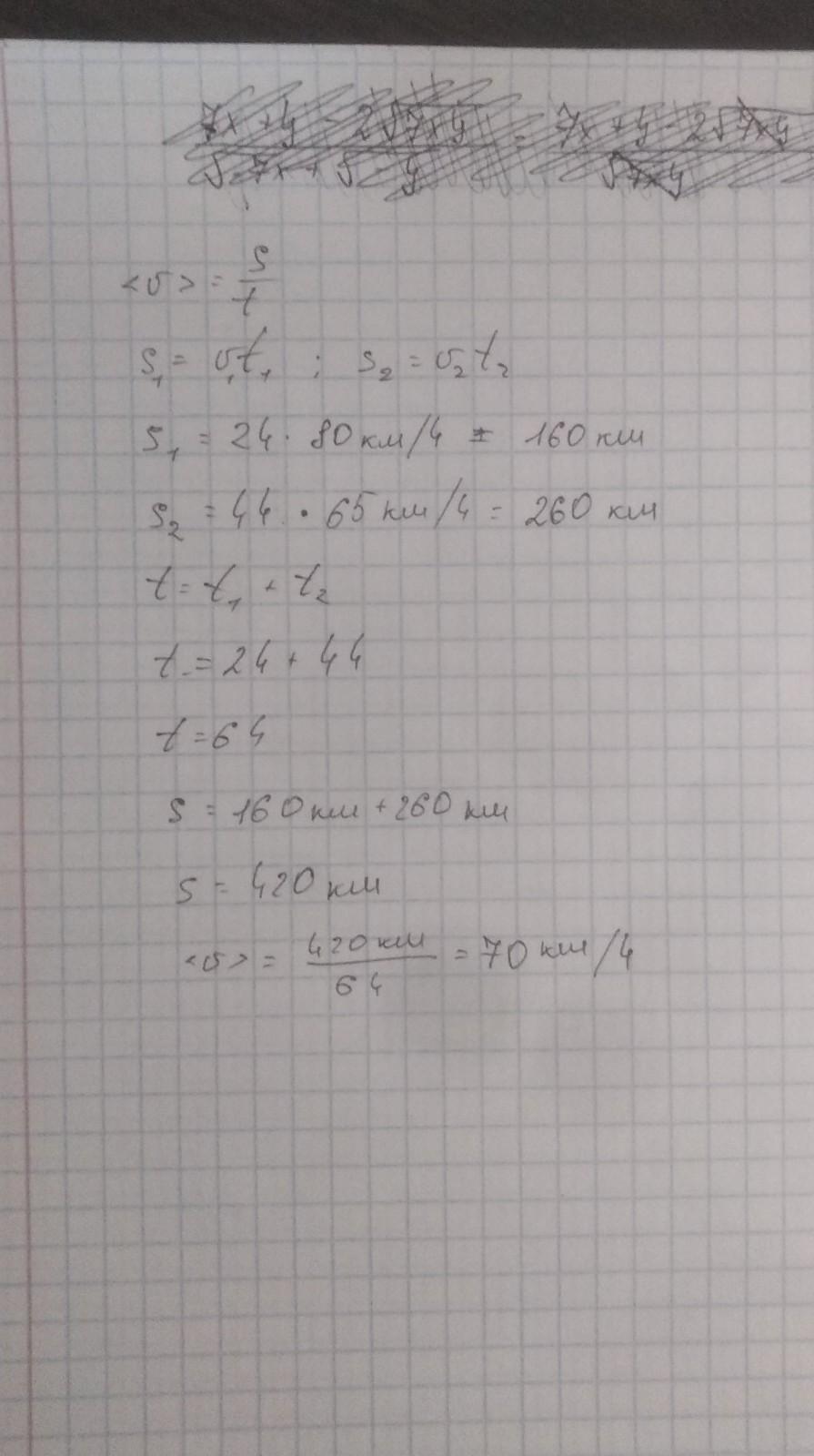 Автомобиль ехал 2 ч со скоростью 80км/ч и 4 ч со скоростью 65 км/ч. Найди среднюю скорость движения автомобиля на всём пути.