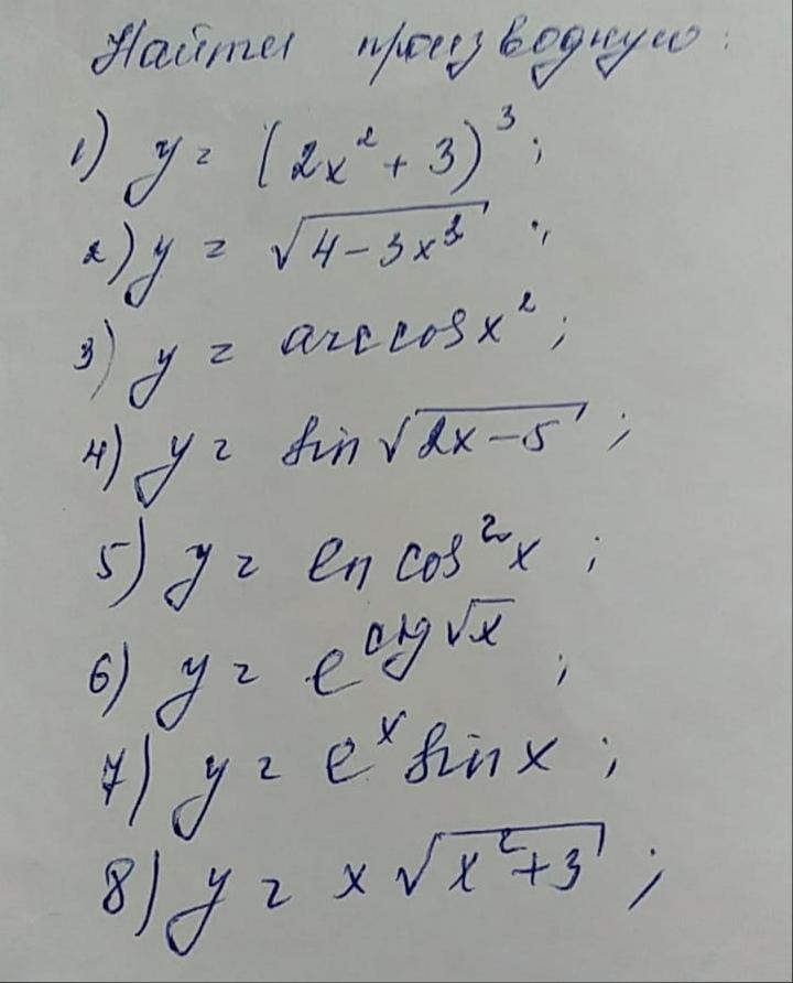 блин, можешь пожалуйста решить 4 и 5 тоже? 5) y= ln cos²x 6) y= e^ctg√x в шестом после e все в степени