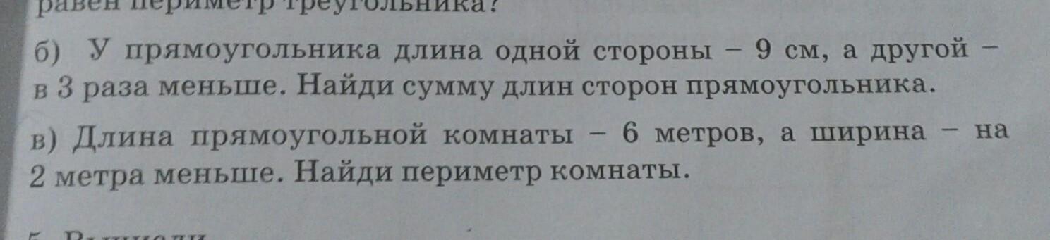 так как нам известно, что одна сторона=9 см, а вторая в 3 раза меньше