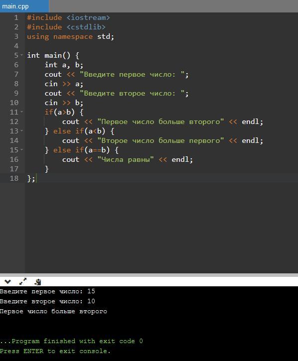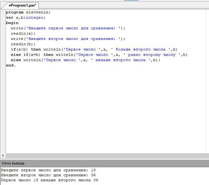 if(a>b) then writeln('Первое число ',a, ' больше второго числа ',b)