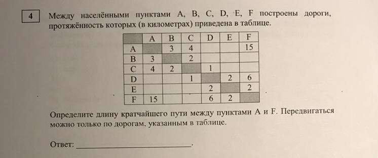 Все пути рассмотрели, лучший путь ACDEF за 9км