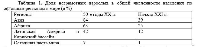 1) Проанализируйте данные таблицы 1 и сделайте общий вывод об уровне грамотности населения в мире во второй половине XX – начале XXI в.