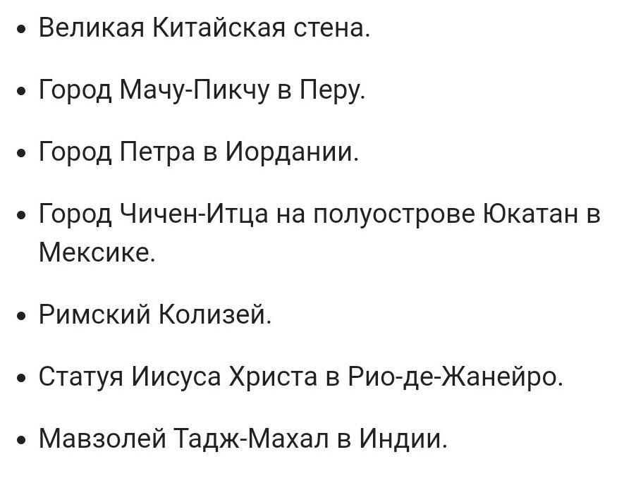 Какую информацию ты получил(а)?Где были созданы памятники к здания, считающиеся Семью чудесами света?Почему по отношению к чудесами света используют прилагательные по словом самый?Чем отличается чудесное место от обычного?