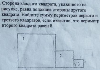 Сторона большого квадрата=4,знвюачит его периметр 4*4=16