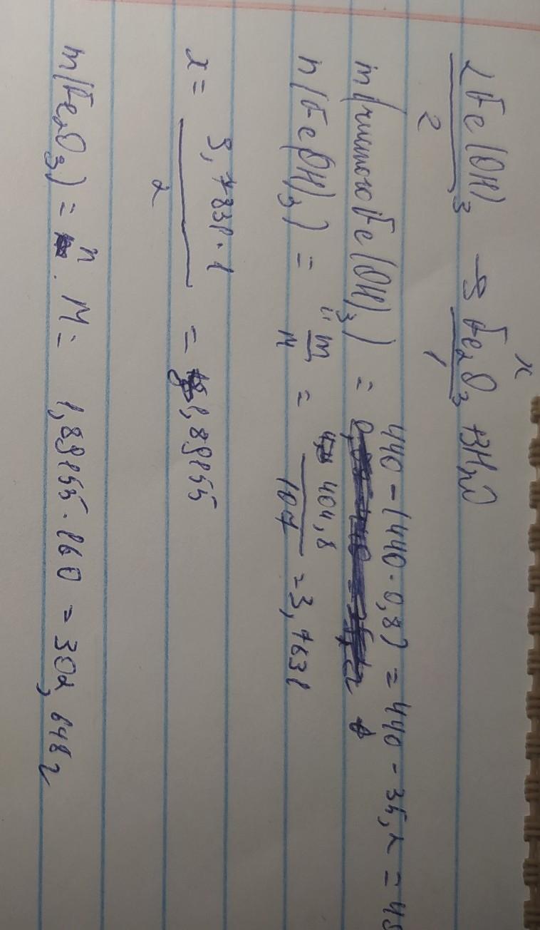 сколько граммов оксида железа 3 можно получить при термическом разложении 440 г гидроксида железа(3), загрязненного примесями (массовая доля примесей составляет 8%)