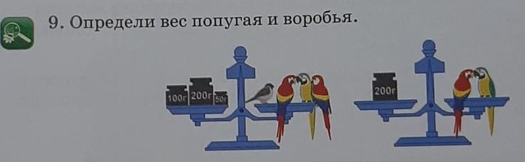 вес попугая 100 г, вес воробья 50 г