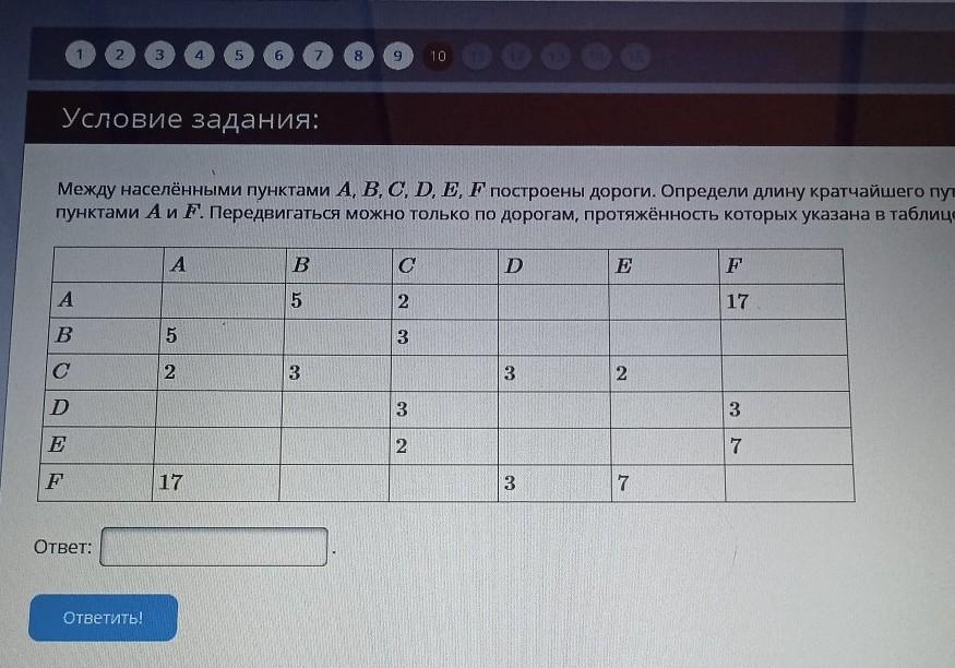 Отсюда следует, что длина кратчайшего пути равна 8.