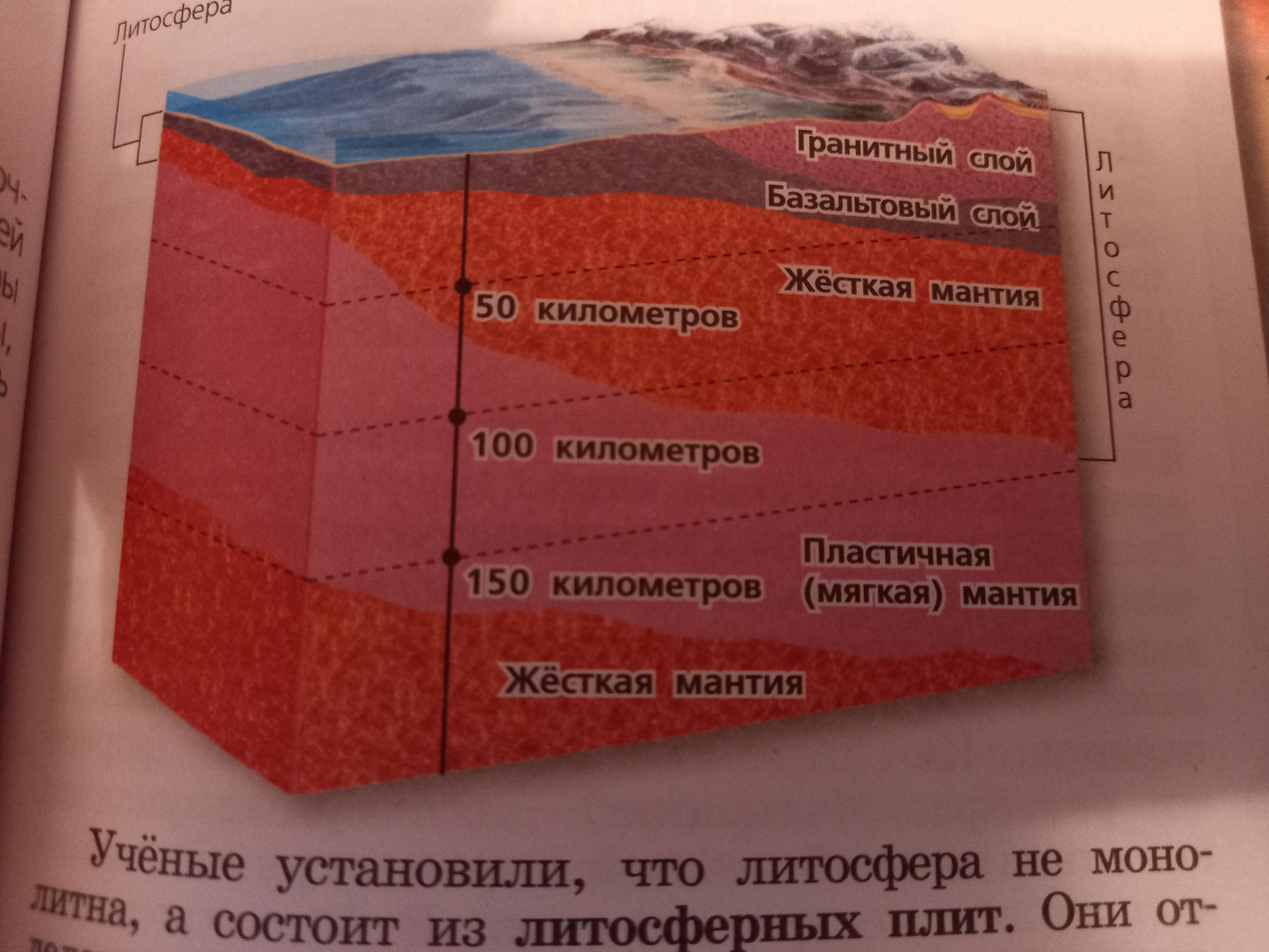 По рисунку 4.5 расскажите о строение литосферы и её мощности