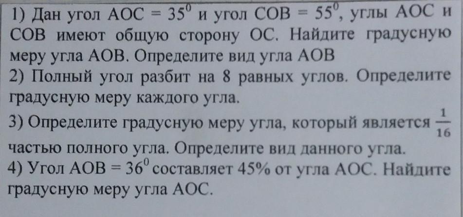 1) <АОВ=<АОС+<СОВ=35+55=90 - прямой угол