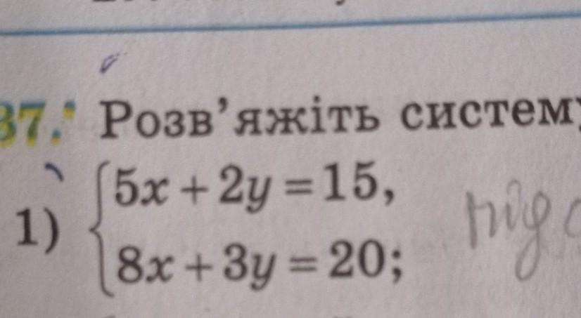 5*(-5)+2у=15. -25+2у=15. 2у=40. у=20